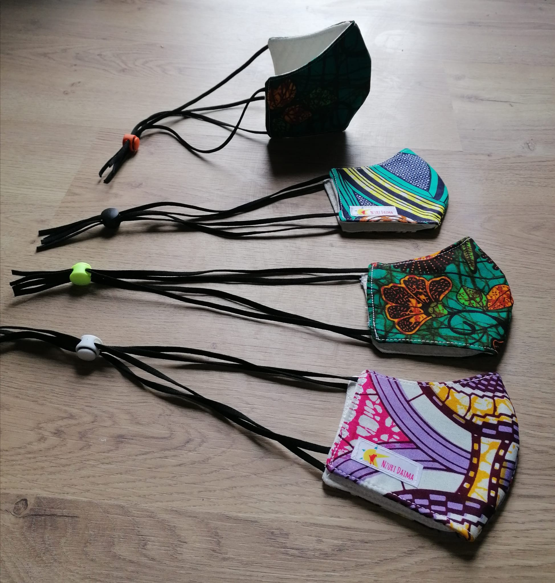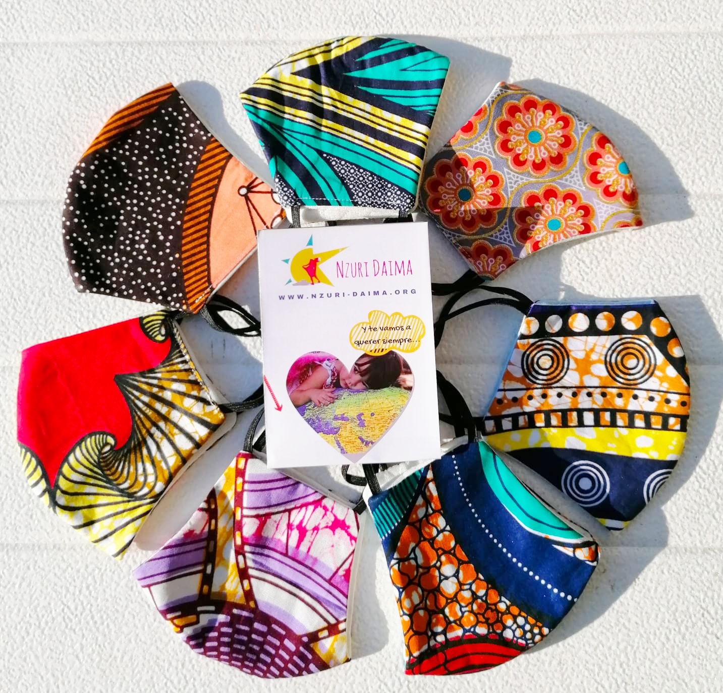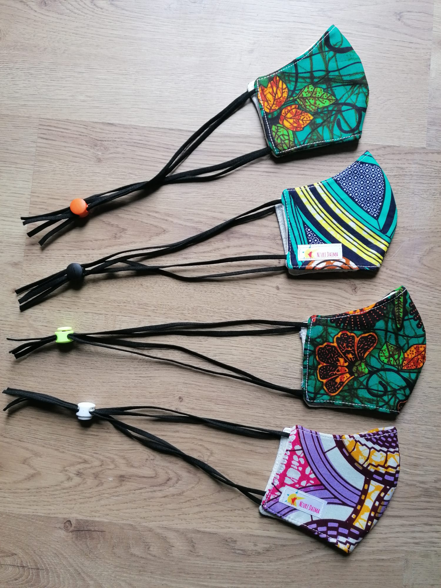También disponemos de mascarillas con tela africana reversible con filtro recambiable y las nuevas mascarillas reutilizables con tiras ajustables!!